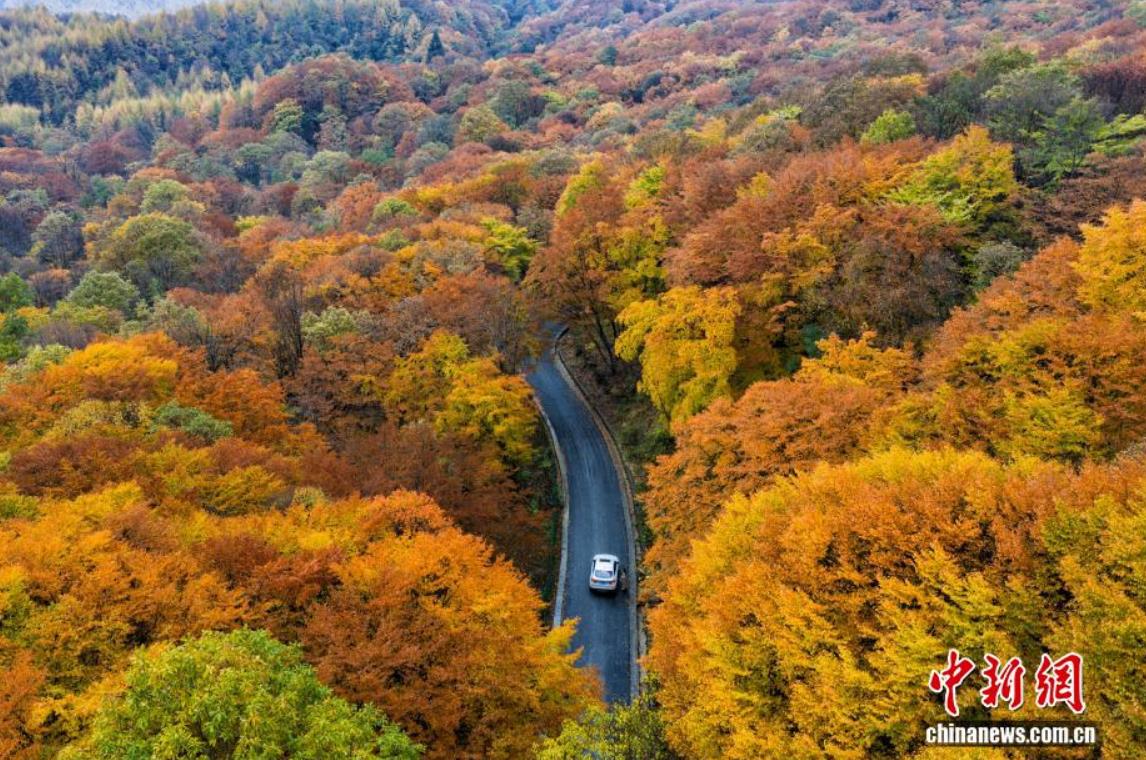 四川旺蒼米倉(cāng)山萬(wàn)山紅遍 游客陶醉彩林間