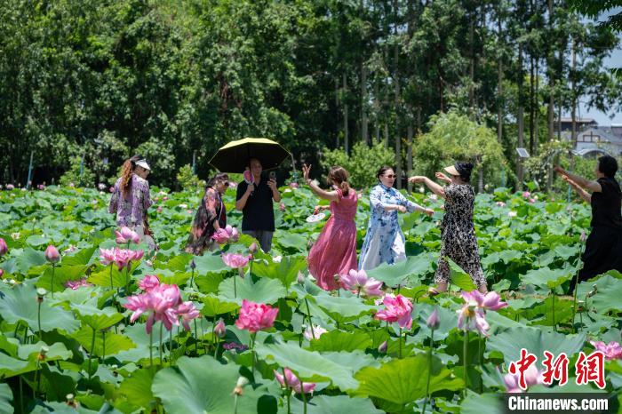 四川成都:千畝荷花盛開(kāi)引游人